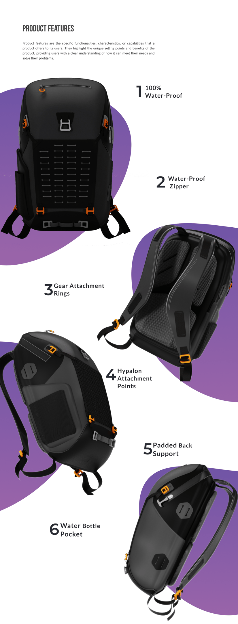 The ultimate companion for adventurous souls, with its 100% waterproof design, high-density Nylon and thick TPU lamination materials, gear attachment rings, and sleek professional appearance, this backpack ensures durability, functionality, and style for your challenging expeditions.