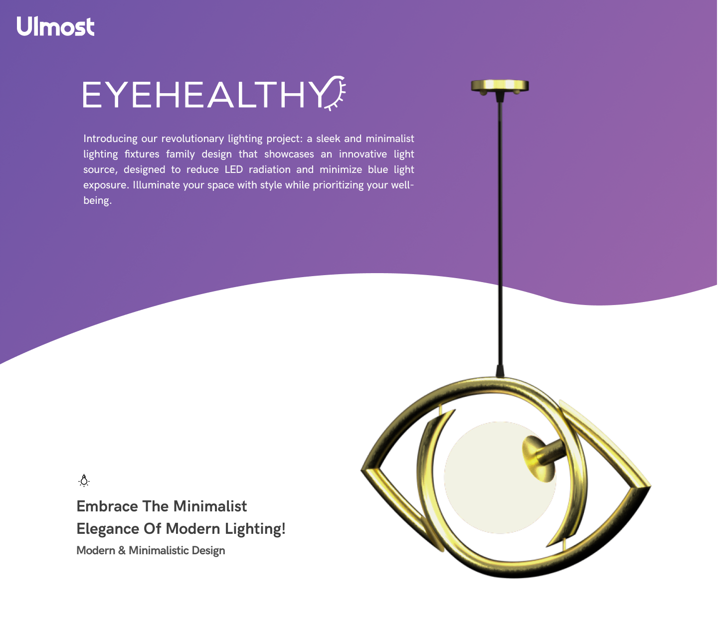 A sleek and minimalist lighting fixtures family design that showcases an innovative light source, designed to reduce LED radiation and minimize blue light exposure. Illuminate your space with style while prioritizing your well-being.